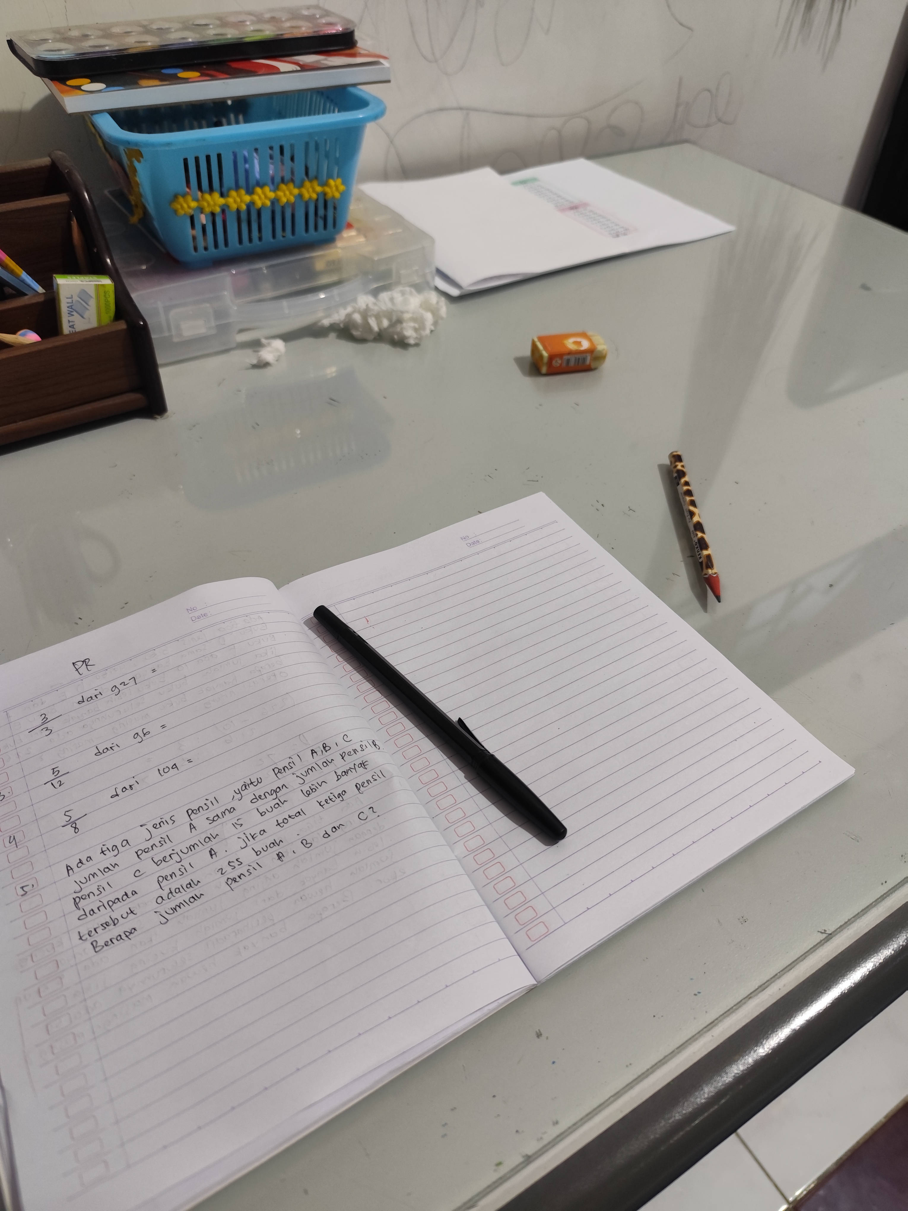 | 10/11/2025 | 10/11/2025 21:16 | Vivi Puspita Savitri | 085648657115 | Les Privat Offline | Rumah Murid | Kelas 3 SD | 1 | Aisyah Yasmin Ayudia | B. Indonesia : Menulis huruf tegak bersambung Mengerjakan soal di buku paket mengenai kalimat larangan dan anjuran IPAS : All about matter : soluble (macam benda yang larut dan tidak larut dalam air) Challenge membaca buku dan menjawab kuis di MyOn Hafalan surat Al-Adiyat ayat 1-11 |